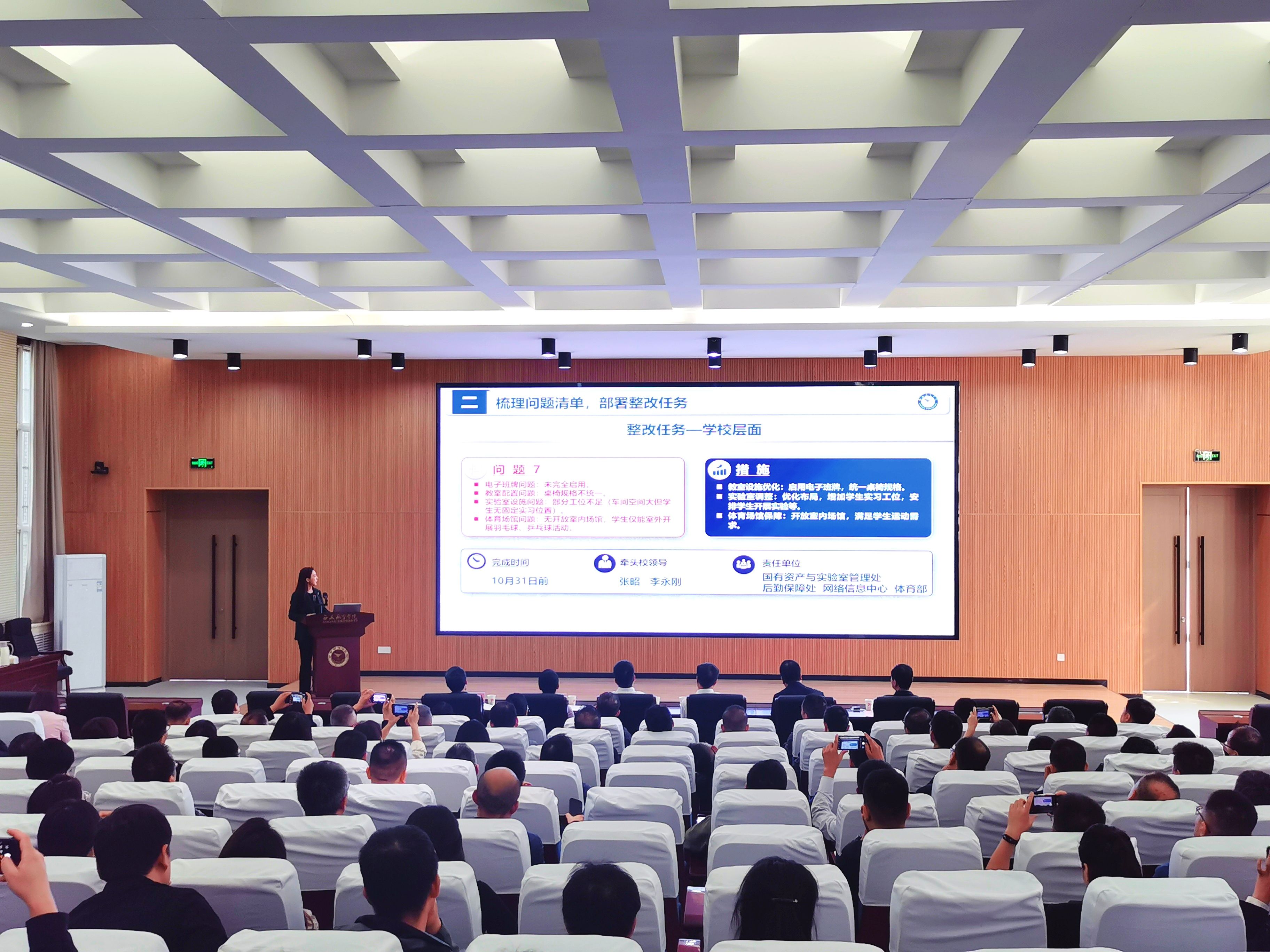 会上,迎评工作办公室副主任刘宁从迎评工作回顾、问题清单梳理及整改任务部署、迎评工作要求三个方面汇报。她强调,距正式评估仅剩40天,需聚焦问题抓整改、全员聚力迎评估,以最优状态接受检验。