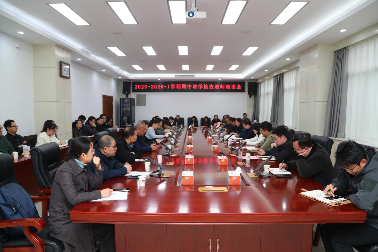 为全面掌握本学期开学以来的教学运行情况,进一步提升教学管理服务的精准性和实效性,根据2025-2026学年第一学期期中教学检查工作安排,学校于10月30日上午在阎良校区第二会议室召开期中教学检查教师座谈会。副校长宋文学出席会议,教务处、学生工作部、人事处、后勤保障处、网络信息中心、校办工厂等相关部门负责人及13个二级学院(部)的30余名教师代表参加会议,会议由教务处副处长刘宁主持。