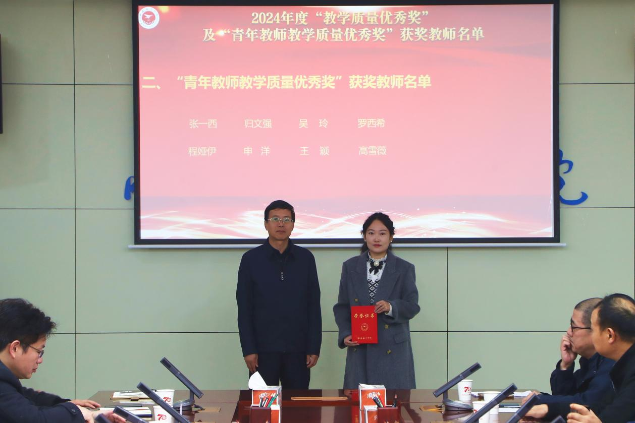 会上,刘宁以迎接审核评估为切入点,系统梳理了开学以来的整体教学运行情况,通报了前期问题的整改落实情况,并号召全体教师以高度责任感投入到评估准备工作。随后,刘宁宣读《关于表彰2024年度“教学质量优秀奖”及“青年教师教学质量优秀奖”获奖教师的决定》,宋文学副校长为各学院获奖教师代表颁奖,并向他们表示热烈祝贺。