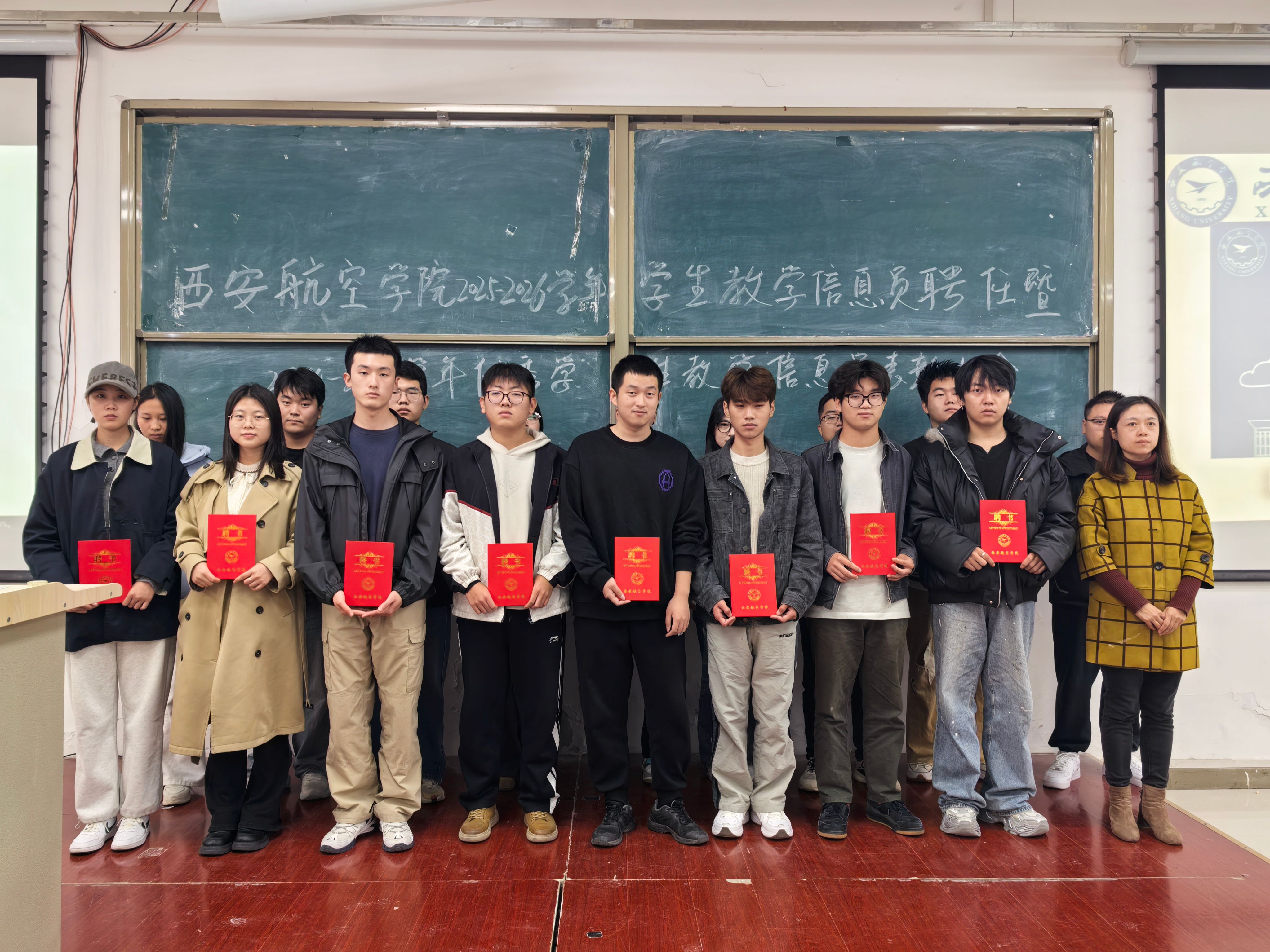随后宣读了《关于表彰2024-2025学年优秀学生教学信息员的通知》与《关于聘任2025-2026学年学生教学信息员的通知》,吕靖宇等20名同学获评“优秀学生教学信息员”,彭鑫钰等399名学生受聘为第九届学生教学信息员,并颁发荣誉证书和聘书。