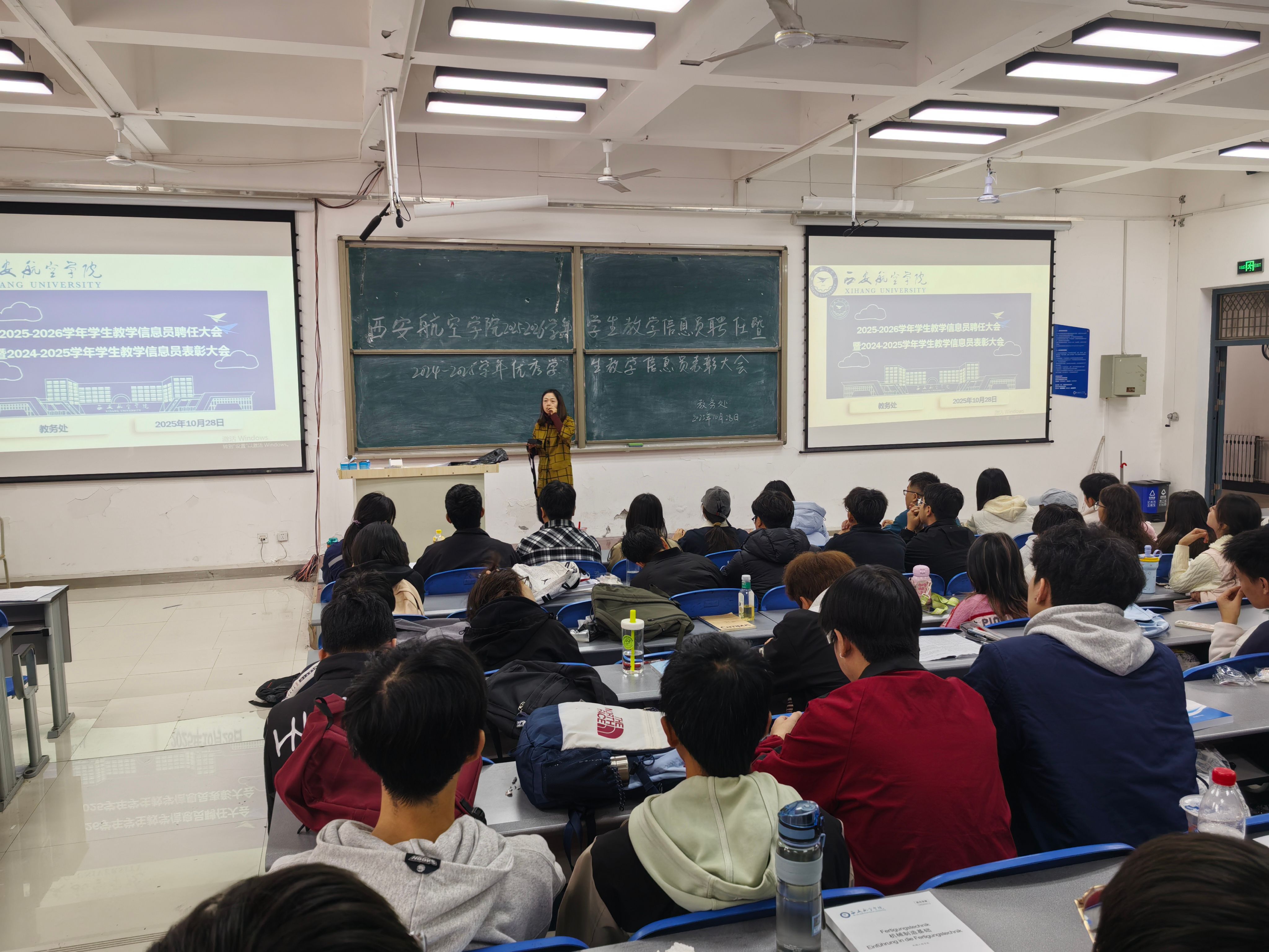 屈倩对2024–2025学年学生教学信息员工作进行全面总结,并通报上学年重点问题的整改落实情况,在场学生直观感受到信息反馈带来的实际成效。面向新一届信息员,屈倩明确工作职责与要求,鼓励大家以高度负责的态度,精准收集教学一线信息,推动信息员工作质量再上新台阶。
